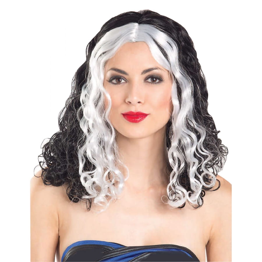 Cette Longue perruque noire et blanche bouclée est parfaite.
