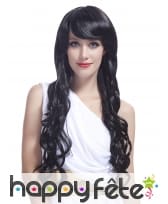 La longue perruque noire ondulée pour femme est faite de cheveux synthétiques.