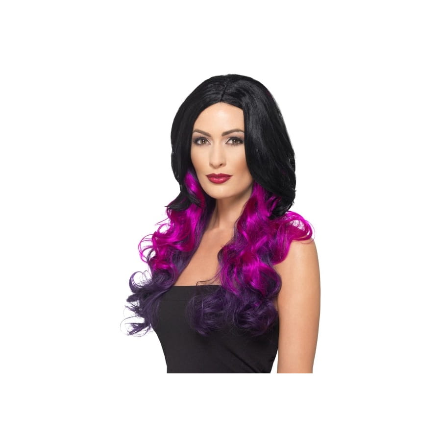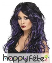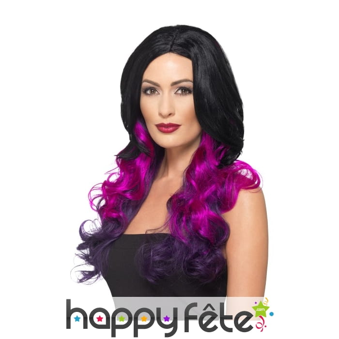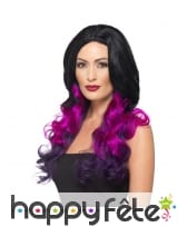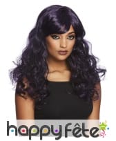 Cette longue perruque noire teintes de violet, ondulée se prêtera à tous vos caprices, Mesdames.