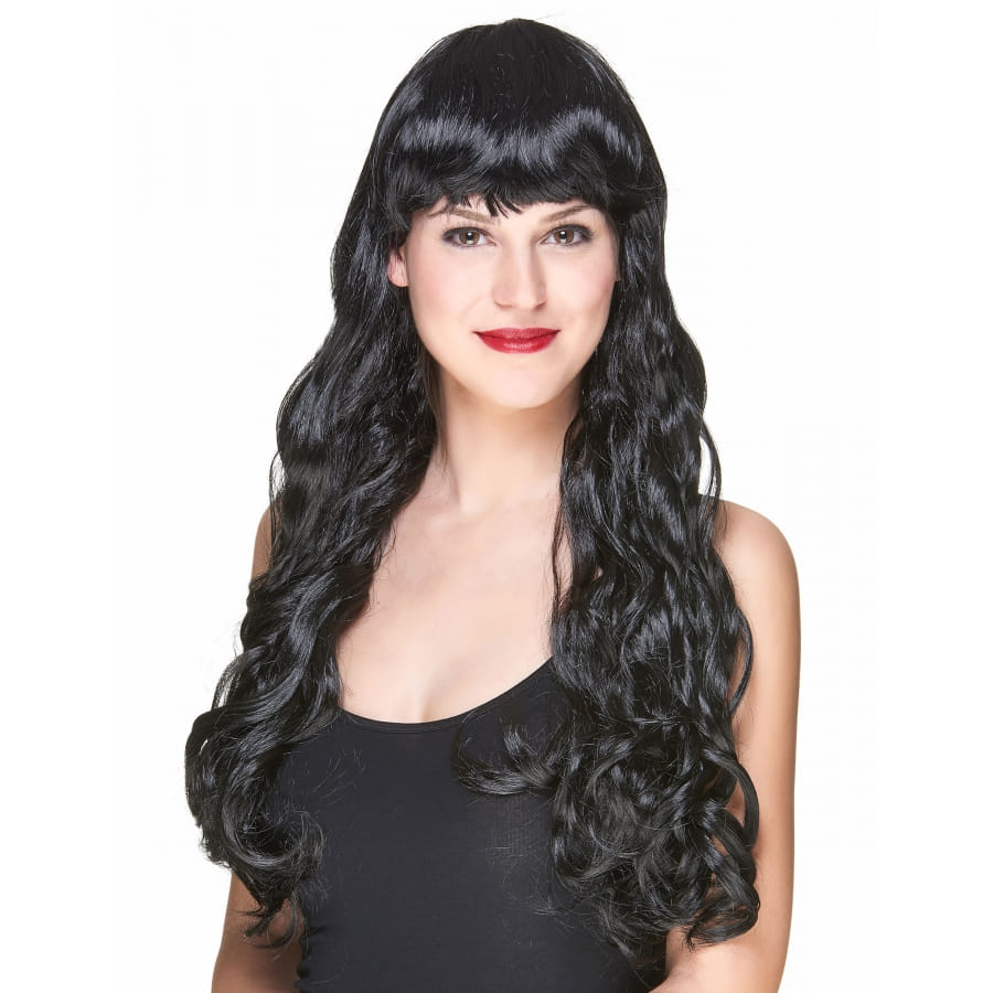 Le temps d'une soirée, pour compléter votre tenue, vous pouvez arborer cette longue perruque ondulée avec frange droite, car toutes les femmes ont toujours rêvé d'avoir, au moins une fois dans leur vie, une longue toison.