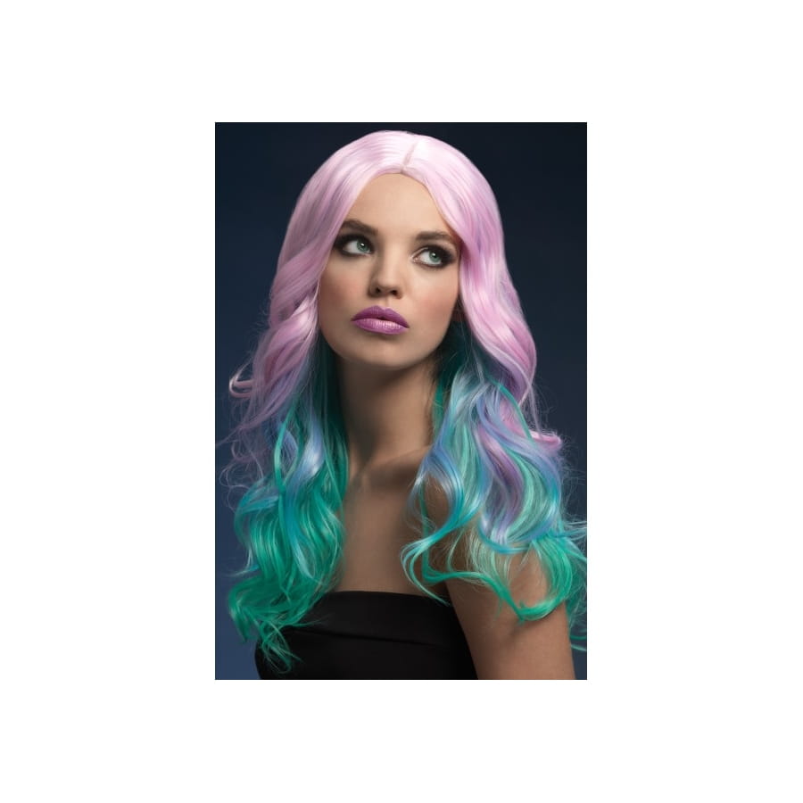 Sortie entre copines ce soir ! Faites-vous remarquer avec une chevelure bien colorée. Adoptez cette longue perruque ondulée multicolore et laissez-vous entraîner dans un jeu de rôle amusant. Vous disposerez de cheveux lisses et légèrement ondulés, teintés de rose, de bleu et de vert. Le modèle vous fera penser à une chevelure de sirène, avec une longueur qui dépasse légèrement celle des épaules.