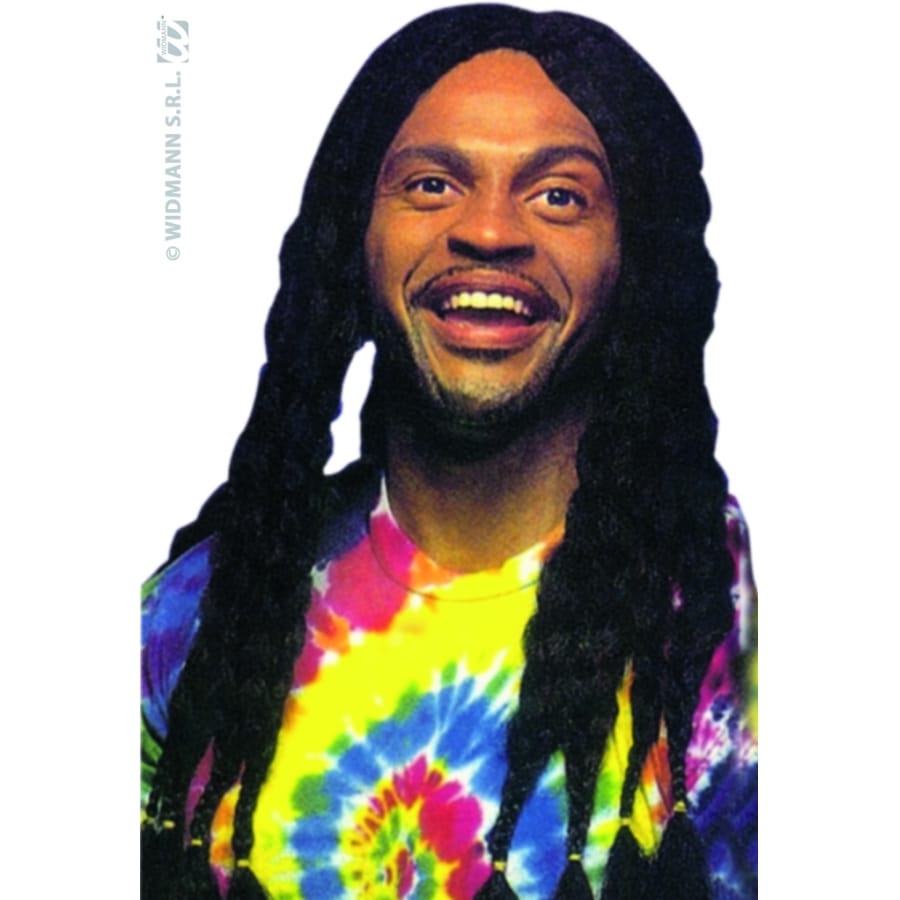 Longue perruque avec tresses inspirée d'un style reggae. Cet accessoire pour homme est de couleur noir. Vous pourrez l'utiliser pour compléter un déguisement de Bob Marley ou tout simplement pour une tenue hippie ou de Jamaïcain.