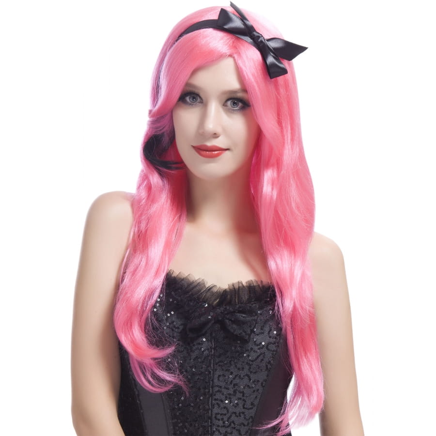 Les avis clients concernant longue perruque rose fluo avec noeud noir