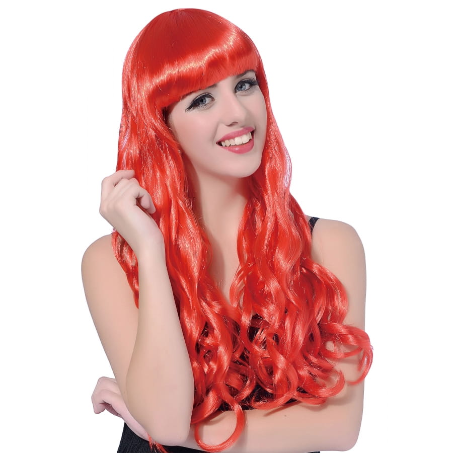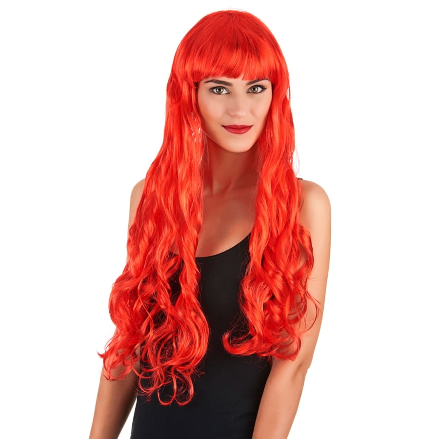 Pourquoi ne pas vous munir de cette longue perruque rouge ondulée pour parfaire votre tenue lors du prochain carnaval ?