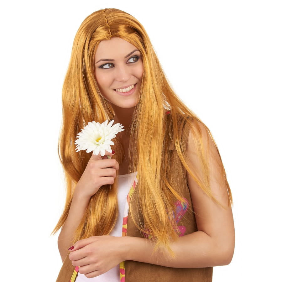 Cette longue perruque rousse et lisse pour adulte sera parfaite pour accessoiriser un déguisement baba cool pendant un carnaval ou une soirée déguisée.
