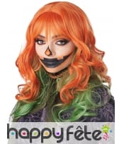 Cette perruque hyper stylée est faite de mèches de cheveux synthétiques ondulés.