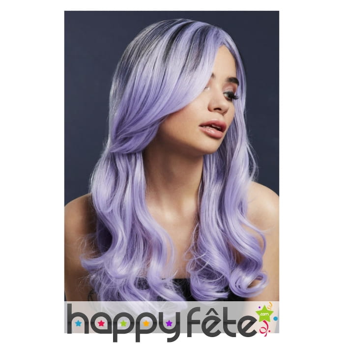 Chic, glamour et sensuelle, cette Longue perruque violette ondulée et racines noires sera l'accessoire parfait pour un déguisement de femme fatale.
