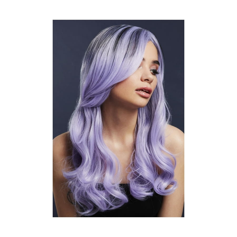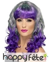D'environ 66 cm de long, la légère ondulation donnée à cette perruque sied à merveille avec sa coloration violette et sa racine noire.