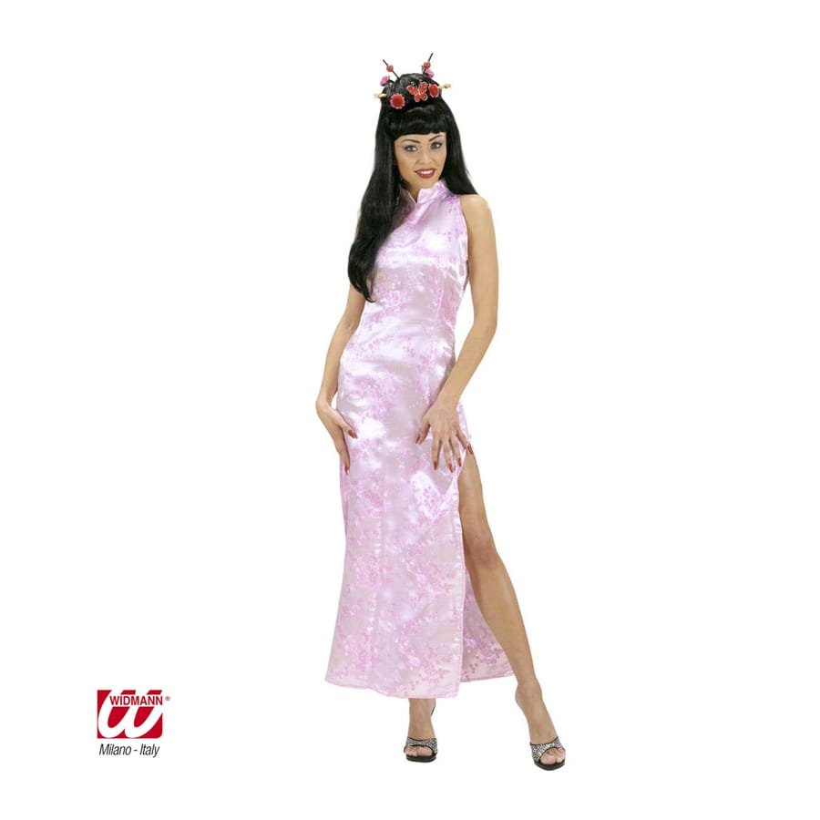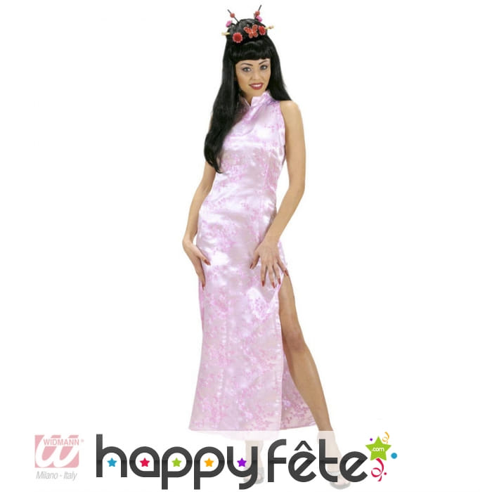 Avec ce déguisement de chinoise, vous pourez parfaitement incarner le personnage d'une Asiatique lors d'une soirée déguisée ou d'une fête sur le thème Asiatique. Pour vous aider à parfaire votre personnage, nous avons prévu ce déguisement longue robe chinoise rose pour femme. Il s'agit d'une longue robe chinoise satinée de couleur rose pâle. Cette robe sans manche assez moulante qui est à la fois élégante et sexy présente un col Mao ouvert et une longue fente arrivant à mi-cuisse sur le côté gauche. Vous pouvez aussi la porter à un mariage. Pour la coiffure, nous vous conseillons de choisir une perruque parmi nos accessoires si vous n'avez pas de longs et soyeux cheveux comme sur la photo.