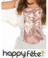 Le bas de la robe est recouvert d'un dégradé de paillettes rose doré (rose gold).