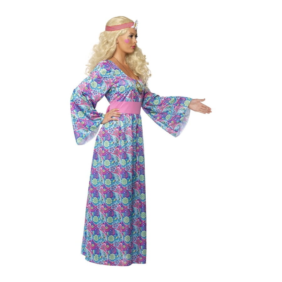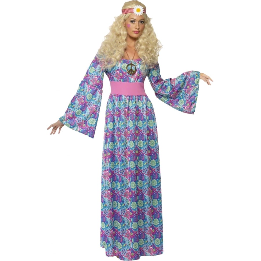 Pour le carnaval, déguisez-vous en hippie dans cette magnifique longue robe avec des motifs de fleur dessus. En taille L, le déguisement est composé d'une longue robe multicolore avec des manches longues et une ceinture.
