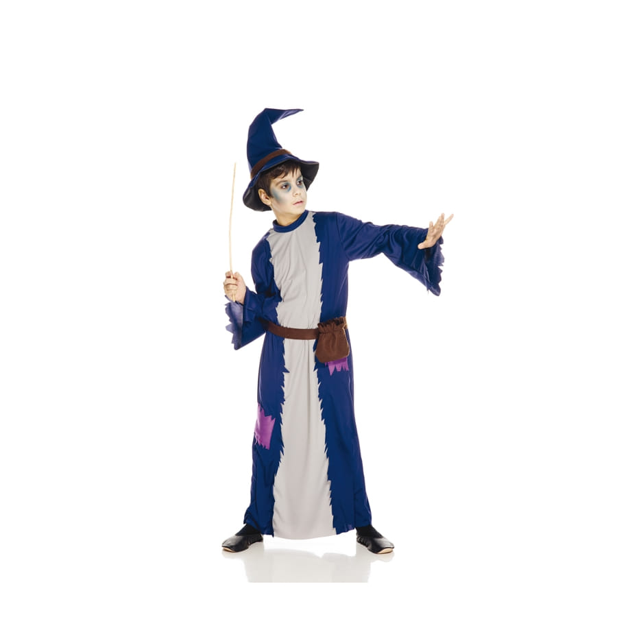 Cette année, vous voulez relooker votre gamin en sorcier, mais vous n'avez aucune idée du costume qui pourrait lui plaire. Choisissez une tenue originale qui reflète très bien le thème de magie et sorcellerie. Fabriqué dans un tissu bleu gris, cette longue robe qui parvient jusqu'au niveau des chevilles convient parfaitement aux garçons âgés de 5 à 11 ans. Un chapeau de couleur bleue est assorti à la tenue. Durant la soirée d'Halloween, ils pourront être dans la peau d'un apprenti sorcier. Et pour être tout à fait dans le thème, la ceinture marron est pourvue d'une bourse. Elle sert à conserver les poudres magiques et les bonbons collectés dans le voisinage.