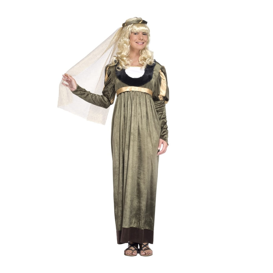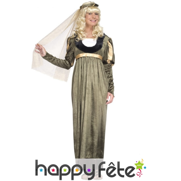 Toutes les femmes rêvent de porter une jolie robe de princesse au moins une fois dans leur vie, en comptant celle qu'elles porteront le jour de leur mariage bien évidemment. Le temps d'un événement déguisé, rien ne vous empêche de réaliser votre rêve et de vous déguiser en princesse. Pour changer un peu des princesses Disney, nous vous proposons d'incarner le personnage d'une princesse médiévale grâce à cette longue robe de princesse médiévale. Ce déguisement inclut une robe longue verte en velours, une ceinture dorée et une coiffe assortie. La robe présente un col rond deux tons noir et blanc, et des manches longues gigot.