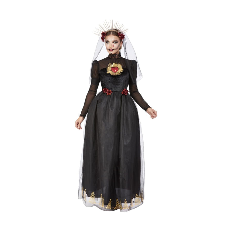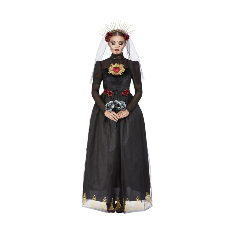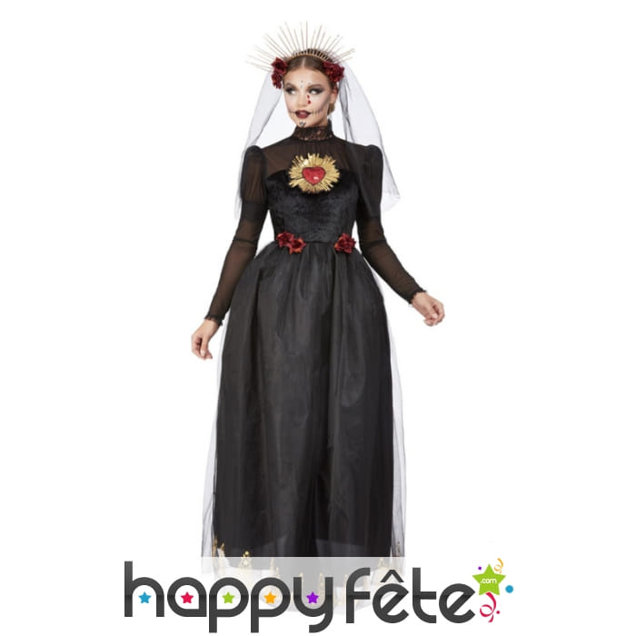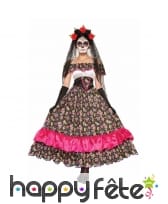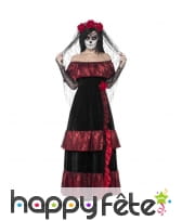 Frappez un grand coup pour le prochain dia de los muertos, en arborant la longue robe noire de Lady Calavera avec voile.