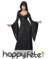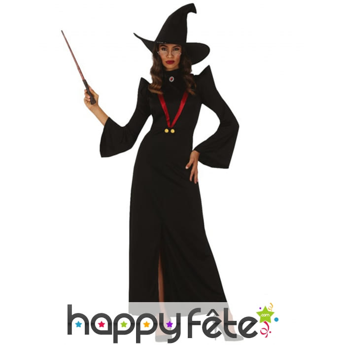 Imposez le charme de votre style machiavélique avec la longue robe noire de magicienne pour adulte.