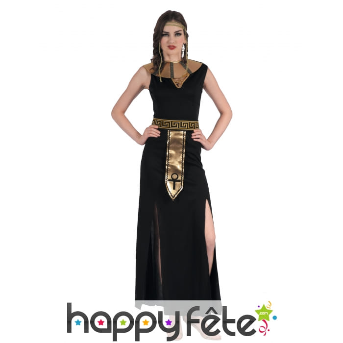 Le sceptre de pharaon que vous pouvez voir sur certaines photos n'est pas inclus avec cette longue robe noire égyptienne pour femme.