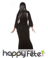 Cette robe est de couleur noir opaque et longue jusqu'aux chevilles.