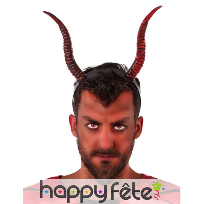 Il est question ici d'un serre-tête noir surmonté de longues cornes rouges.