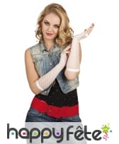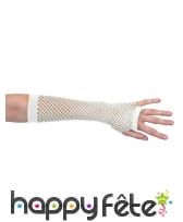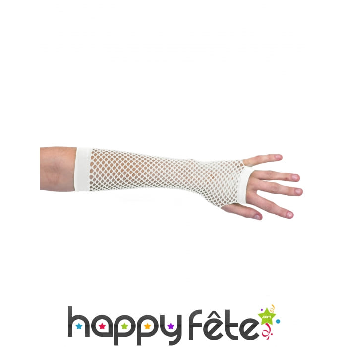 Habillez vos avant-bras pour donner un effet punk à votre look. Ces longues mitaines blanches en résille vous iront comme un gant ! Équipées d'élastiques aux extrémités, elles arrivent à couvrir toute la partie avant du bras et laissent les phalanges à l'air. Elles sont conseillées pour accessoiriser une tenue de danseuse ou de danseur disco.