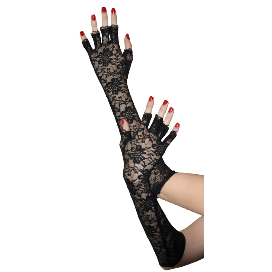 Pour une touche chic à votre tenue, optez pour ces très belles mitaines longues en dentelle, de 35 cm, en 100 % polyester. Elles sont entièrement de couleur noire, avec des agréables motifs de fleurs. L'élégance que porte cet accessoire vous rendra plus séduisante et plus sexy lors de la soirée en amoureux de la Saint Valentin, au Nouvel An ou à Noël. Ces gants pourront justement accompagner un déguisement de séductrice, de sorcière noire, de vampiresse, ainsi que tous les costumes Charleston. Cet accessoire est réservé aux femmes.