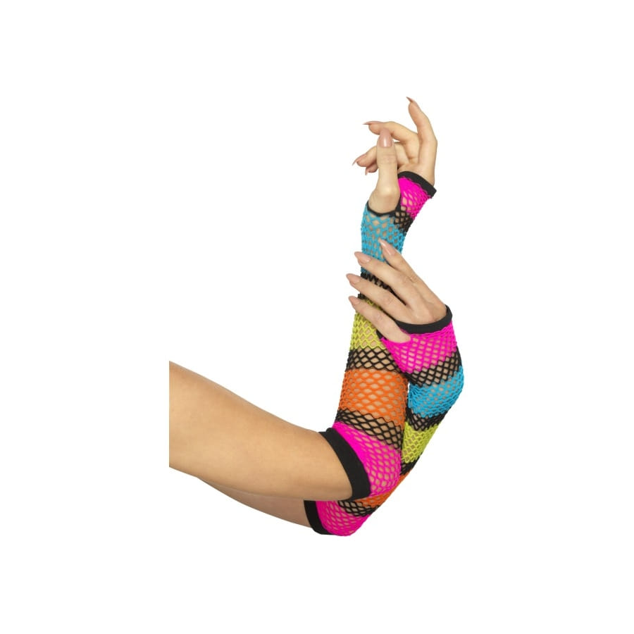 Une paire de mitaines représente plus qu'un simple accessoire mode. Avec les longues mitaines résilles multicolores, vous êtes certaine d'être bien équipée pour le carnaval. Elles couvriront vos avant-bras de belles rayures noires et multicolores. Ce modèle souple et confortable est parfaitement adéquat pour accompagner un déguisement hippie, un costume de danseuse, un look punk ou une tenue sport.