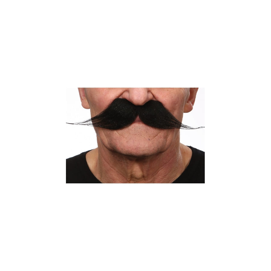 Cette moustache de luxe pour gentleman irait parfaitement avec votre déguisement de marquis ou de gentleman. Elle est très longue avec 25 cm de longueur et 6 cm de largeur, mais elle est très bien taillée et d’une belle couleur noire. De plus, vous pourriez la mettre aisément car au contact de votre peau, elle se collera directement, c'est sa propriété auto-adhésive. Et sa qualité n'est plus à discuter puisqu'elle est de fabrication européenne.