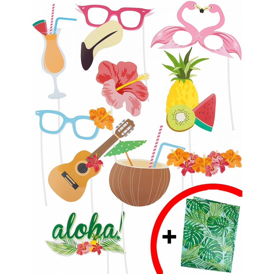 Voici pour vos cérémonies de mariage ou d'anniversaire, fêtes d'entreprise ou séminaires, un lot de 10 photobooth style hawaïen, qui vous permettra de réaliser d'amusantes photos en un seul geste et qui évoquerontla célèbre île d'Hawaï.