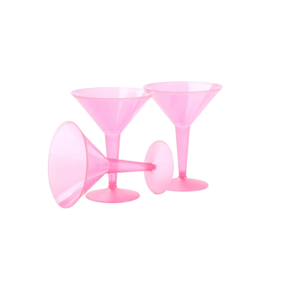 Les 10 verres roses à Martini de 237 ml sont en plastique.