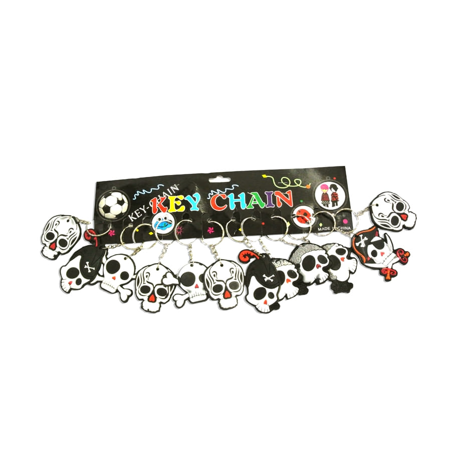 Ces 12 porte-clefs vous seront sûrement très utiles. De couleur noire et blanche, ils ont la forme d'un squelette de tête de mort. Lors d'une soirée Halloween, à part les masques et les costumes de déguisements d'horreur que vous portez, vous pouvez aussi mettre ces porte-clefs tête de mort pirate sur votre sac, les distribuer à vos invités ou en faire des lots pour des jeux.
