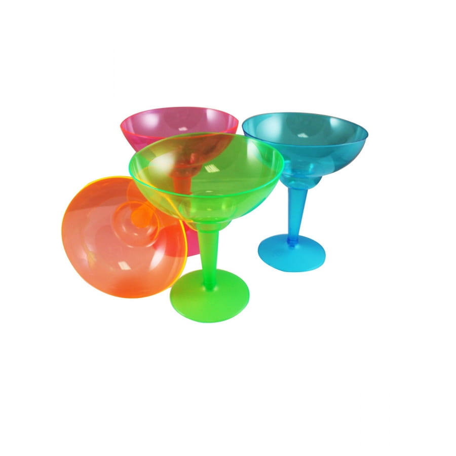 Achetez ce lot de 12 verres à margarita en plastique coloré.