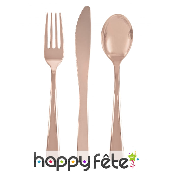 Leur design et leur couleur rose doré à effet métallisé font de ces couverts de parfaits accessoires de décoration pour une fête VIP.