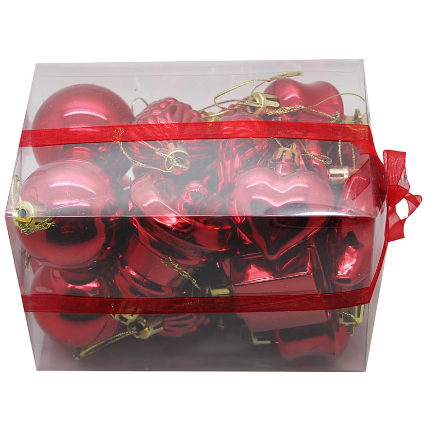 Pour une décoration de Noël réussie, il vous faudra absolument vous procurer ce superbe lot. Il contient 20 décorations de Noël en plastique de couleur rouge métalisé. Vous y trouverez différentes formes et tailles de, telles que des coeurs, des boules, etc.
