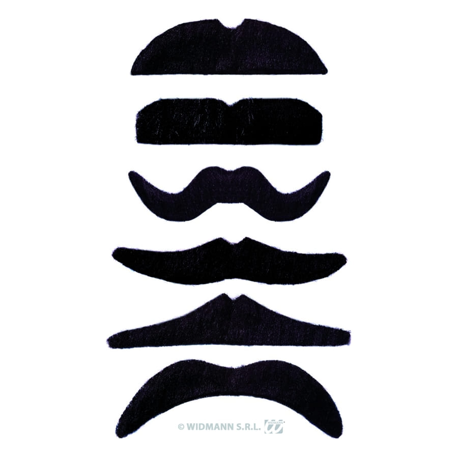 Lot de 24 moustaches auto-adhésives de couleur noire. L'ensemble contient 6 modèles de moustaches assortis. Lors de la commande, vous ne pourrez choisir ni le modèle ni la couleur. Vous recevrez le lot comme présenté. Vous pourrez créer de nombreux styles et déguisement avec ce kit!