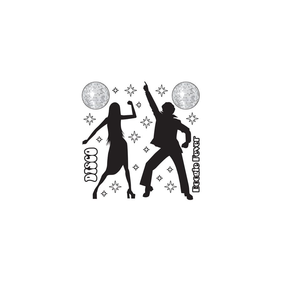 Pour la décoration de votre salle pour une fête sur le thème des années disco cette décoration ira parfaitement sur votre mur. De couleur noir il y a une femme avec de longs cheveux , en jupe qui danse accompagné d'un homme. Cette décoration en plastique fait 80cm *160cm. Vous pourrez vous en servir pour un thème paillettes.