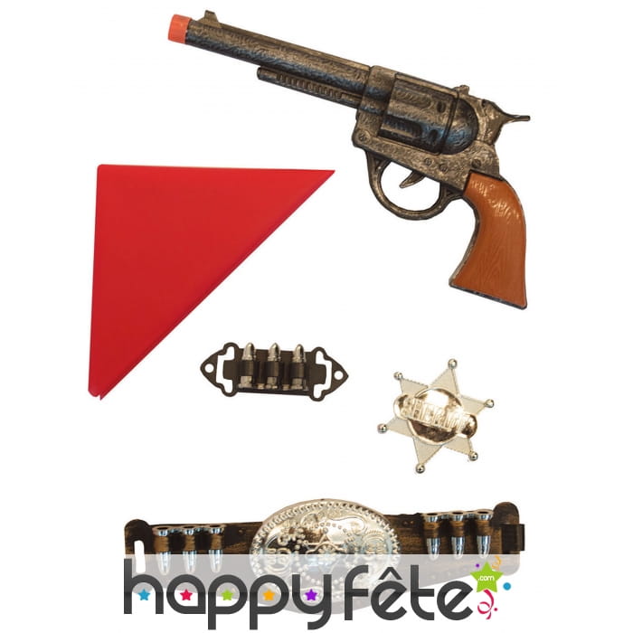 1 bandana rouge de cowboy, que vous pourrez attacher autour du cou ou du bras,