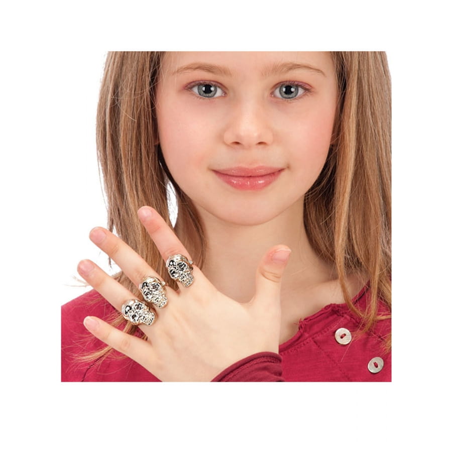 Ce lot de 6 bagues tête de mort en plastique, enfant, sera parfait pour accessoiriser le costume de squelette de votre enfant.