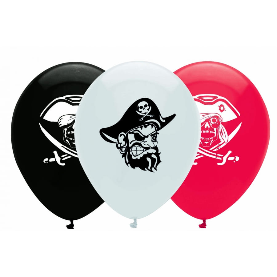 Ils s'agit d'accessoires gonflables de 30 cm décorés de motifs de pirate, parmi lesquels vous aurez 2 ballons pour chacune des 3 couleurs présentes dans le lot.
