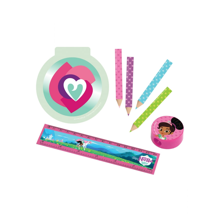 Avec ce lot papeterie de Nella Princesse Chevalier, votre fille se plaira à vivre ses premiers jours d'école, en compagnie de son dessin animé préféré.