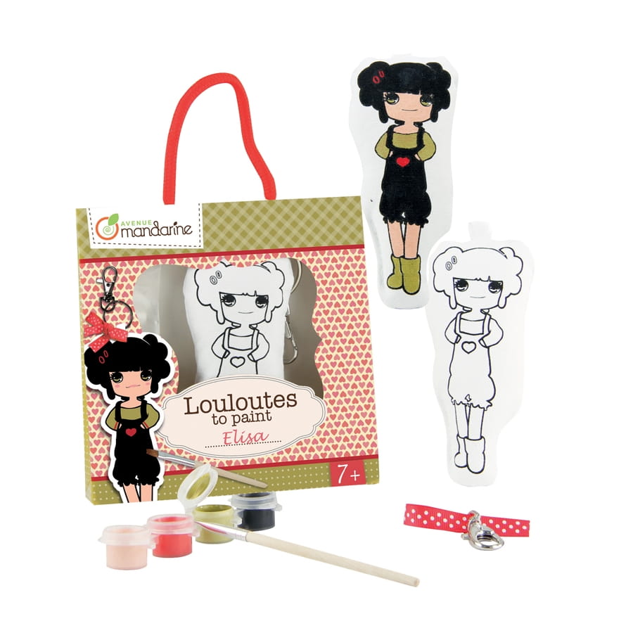 Voilà tout ce qu'il vous faut pour distraire votre petite fille : une mimi louloute à peindre, imitant la petite Elisa. Avec le pinceau et la peinture que nous avons mis dans ce joli paquet, votre petite pourra colorier la petite poupée au gré de ses envies, puis l'accrocher sur sa trousse, son sac, etc... Pour sûr, elle l'appréciera plus que tout car ce sera sa création.
