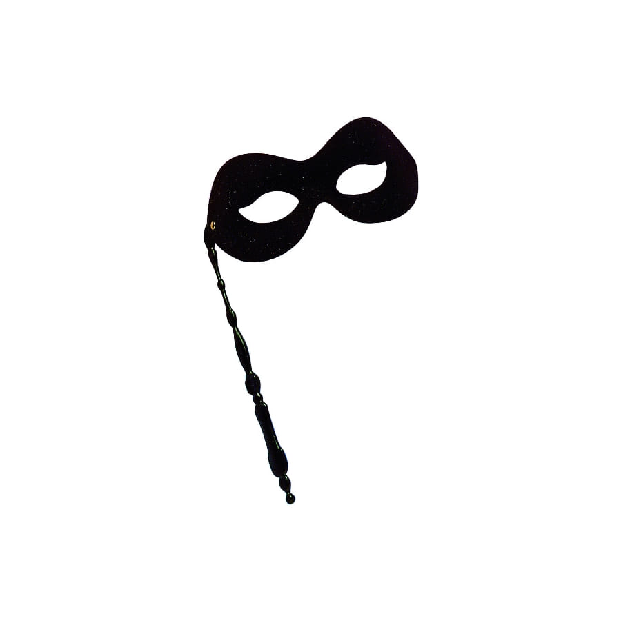 Loup à main de couleur noir. Cet accessoire est destiné aux hommes aussi bien qu'aux femmes. Il est parfait pour un déguisement chic à l'occasion d'une soirée vénitienne.