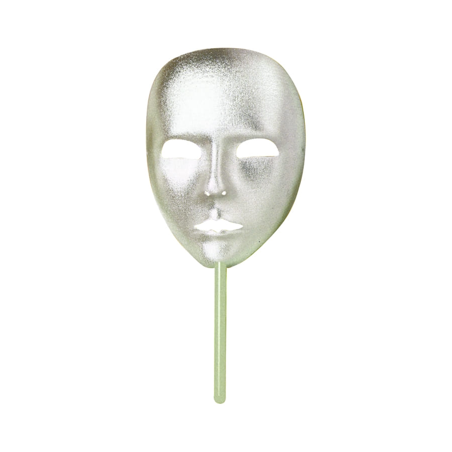 Loup à main de couleur argent, inspiré d'un thème vénitien, pour homme ou femme. Cet accessoire est parfait pour se transformer en personnage élégant le temps d'une soirée vénitienne.