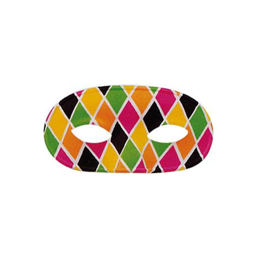 Loup arlequin avec nez. Cet accessoire multicolore est destiné aux filles eu aux garçons. Il sera parfait pour une fête vénitienne ou pour un anniversaire basé sur un thème de Moyen Age.