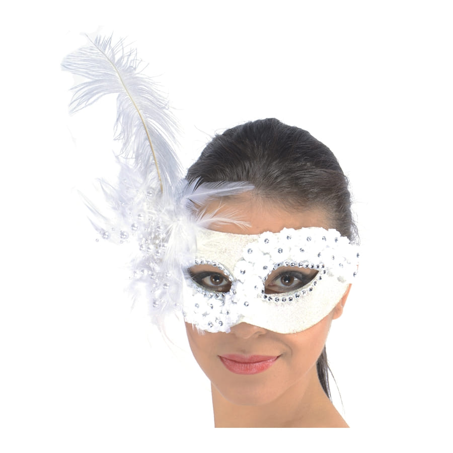 Un bal masqué dont le thème est la couleur blanche, voilà un évènement parfait pour ce loup blanc dentelle et perles. De plus, ce masque a un côté très carnaval de Venise avec ces innombrables paillettes et perles qui l'ornent et la longue plume blanche sur le côté. De nombreux masques pour hommes sont aussi disponibles sur notre site.