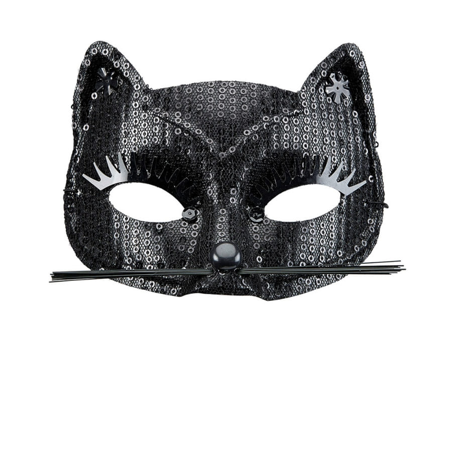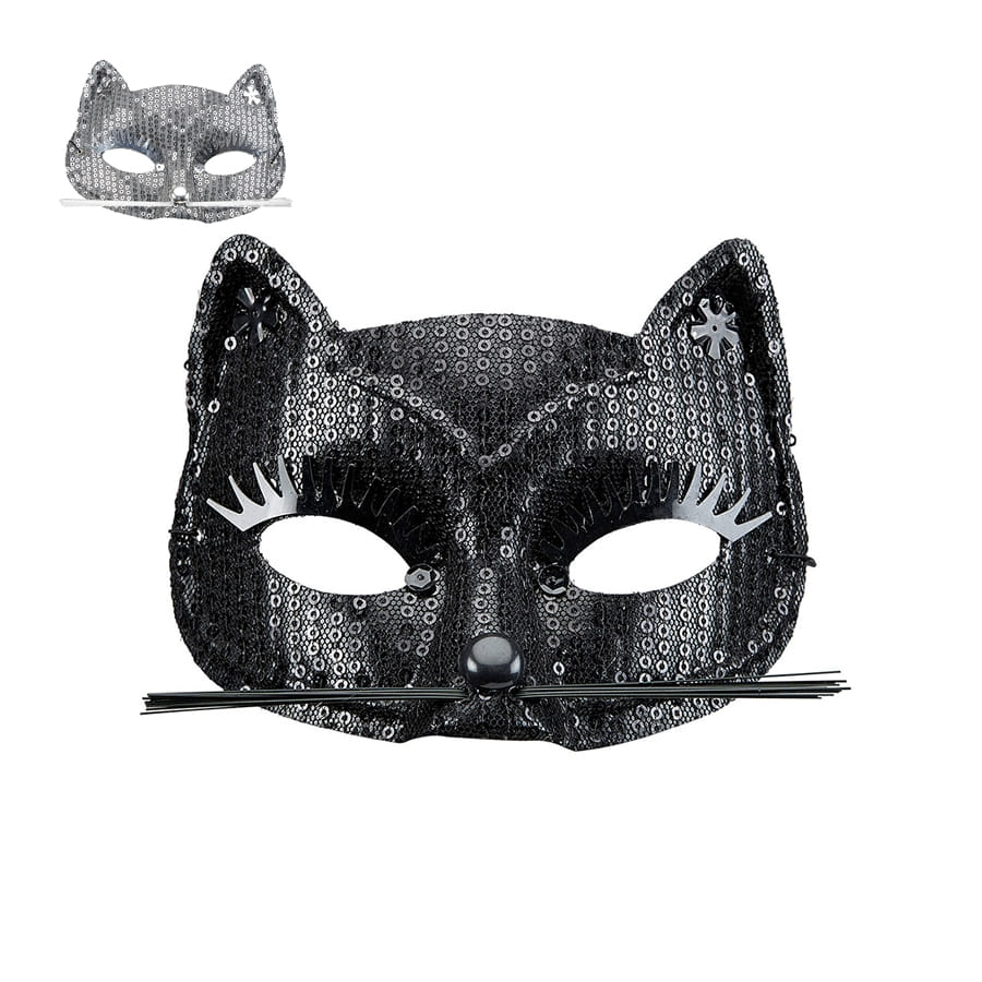 Loup de chat recouvert de petits sequins et de tulle fin pour adulte.
