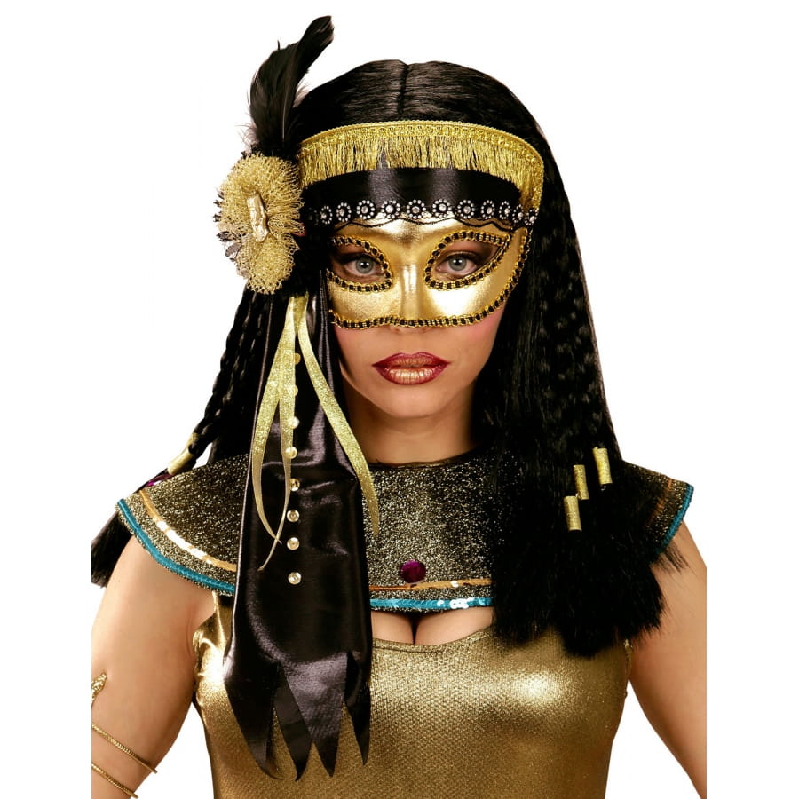 Revivez l'époque des pyramides, et incarnez la reine Cléopâtre à l'occasion d'une fête déguisée en portant ce loup Cléopâtre doré avec tulle noir pour adulte.