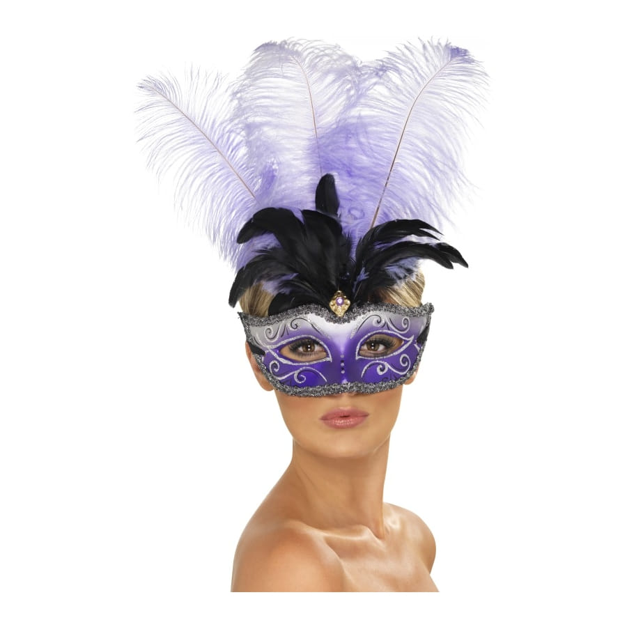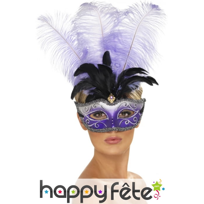Les bals masqués sont redevenus tendances ces temps-ci et cela ne peut que nous faire plaisir ! Surtout vous, Mesdames, qui avez toujours rêvé de porter des loups comme ceux du carnaval de Venise. Et non, vous n'avez pas besoin de passer commande à Venise pour obtenir un masque aussi magnifique, nous sommes là pour cela. Ici, nous avons ce masque vénitien violet paré de splendides plumes noires et violettes. Le masque cachera très bien votre identité mais mettra divinement bien vos yeux en valeur.