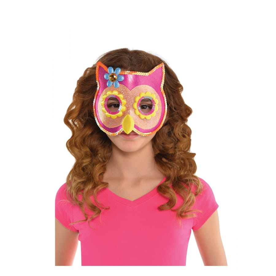 Ce Loup de hibou rose en paillettes pour enfant tiendra sur le visage de votre enfant grâce à un élastique à l'arrière de la tête.