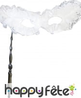 Nous parlons ici d'un loup vénitien de qualité supérieure, confectionné à base de dentelle blanche avec un liseré beige qui forme le contour du masque.