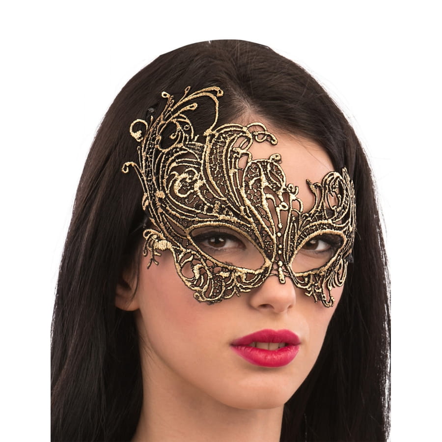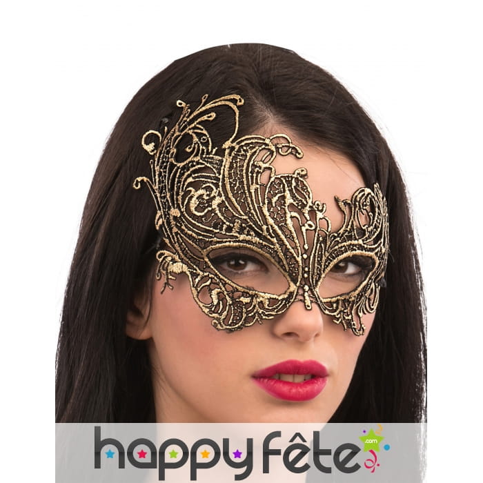 Démarquez vous en restant chic et glamour lors d'une soirée masquée entre amis sur le thème Venise, grâce au Loup doré chic qui remonte du côté droit.