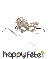 L'effet glamour est relevé par la petite particularité de ce masque: il remonte à droite.
